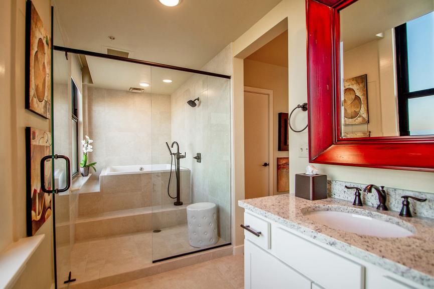 2 BEDROOMS/ 2 BATHS 1 BATH WITH EUROPEAN TUB/SHOWER COMBO 1 LUXURY BATH - GLASS ENCLOSED SHOWER AND SOAKING TUB DISHWASHER, REFRIGERATOR, STOVE AND BUILT-IN MICROWAVE FULL SIZED WASHER AND DRYER CUSTOM LARGE WALK-IN MASTER CLOSET 9 OVERSIZED WINDOWS